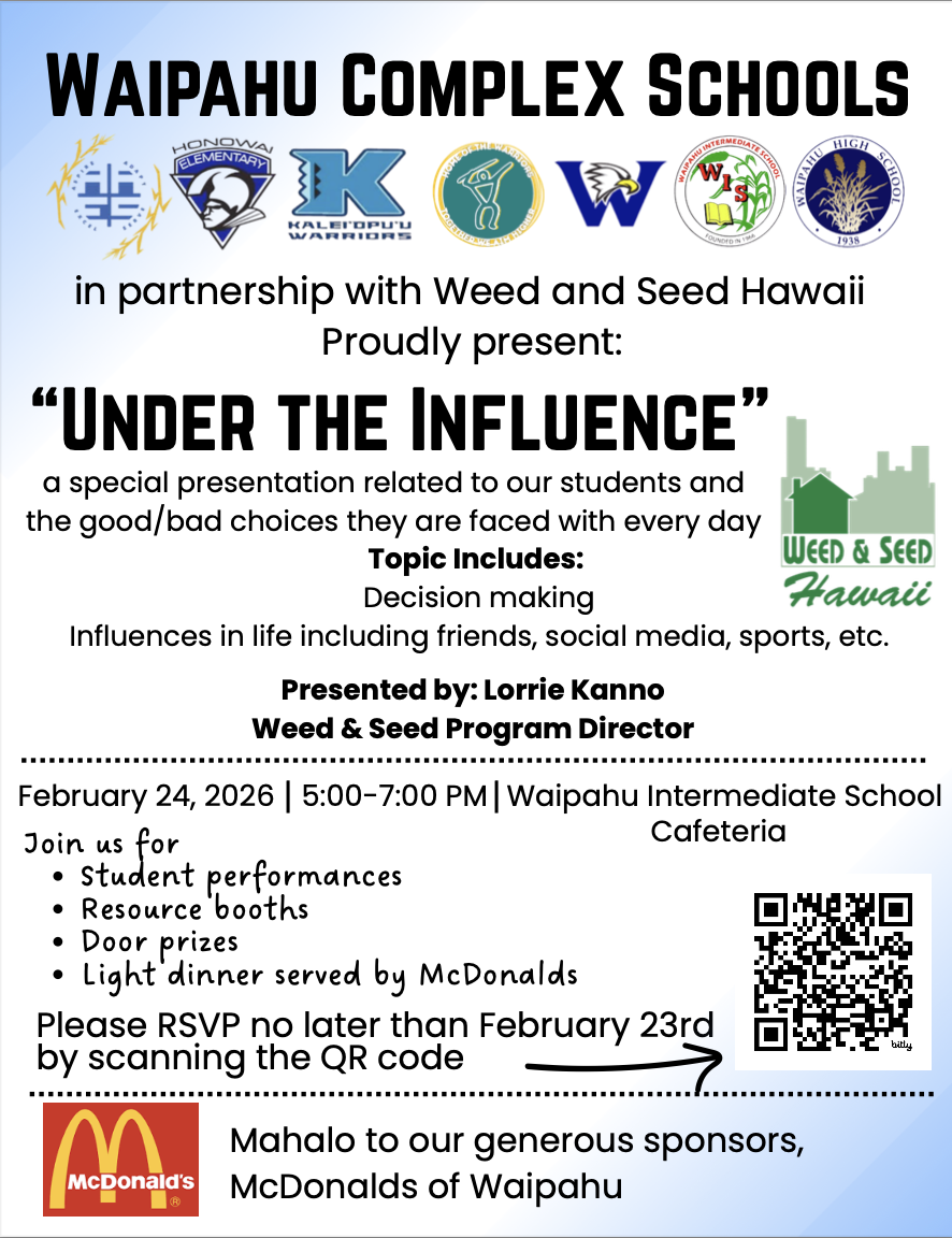Afterschool program for registered WES 4th, 5th and 6th graders. Participants will be exposed to the Hawaiian, Samoan, Filipino, Tongan, Marshallese and Chuukese cultures through language, storytelling, music, art, customs and traditions, dance, etc. The goal is to provide a way for students to learn about each other with the intent of bridging the gaps and eliminating cultural barriers.